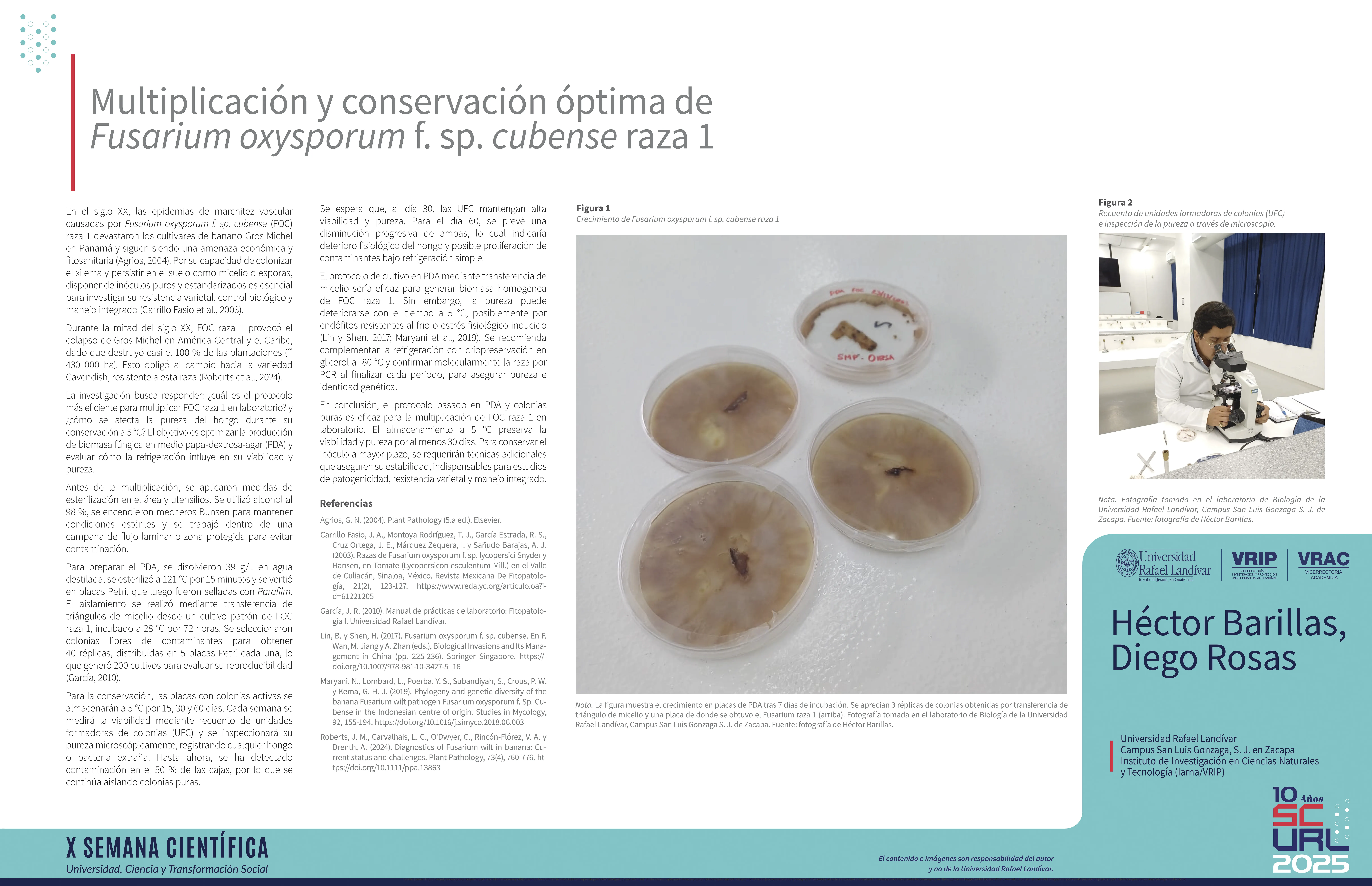 Multiplicación y conservación óptima de Fusarium oxysporum f. sp. cubense raza 1
